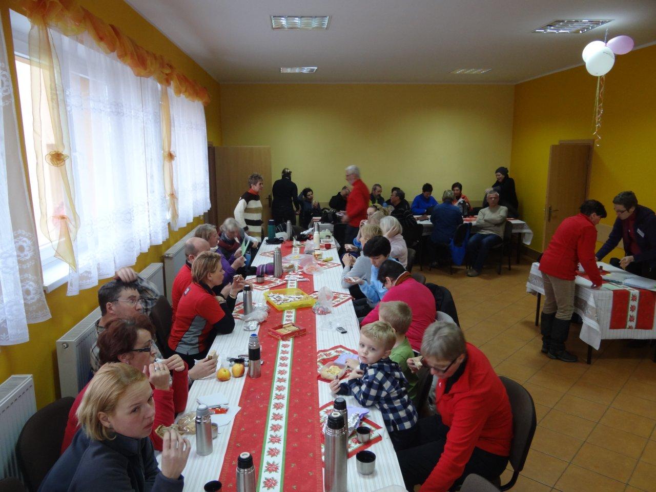 „Jak wynika z sondaży….” A sondowanymi byli członkowie Klubu Turystycznego „Puszcza Zielonka” (KTPZ), którzy 14 stycznia 2012 r. wzięli udział w Marszu Noworocznym w okolicach Dąbrówki Kościelnej. Sondaż wykazał niezwykły hart ducha i ciała, pozytywne nastawienie dla inicjatyw Klubowych i życzliwość Klubowiczów wobec siebie nawzajem. Serce rośnie! Organizatorzy cieszą się z wyśmienitej frekwencji (blisko 50 osób!), licznych nowych członków Klubu i imprezy „dopiętej na ostatni guzik”. Wszystko zaczęło się od nawiedzenia Sanktuarium MB Pocieszenia. Następnie dwóch sportowców – instruktorów nordic walking (Monika Urbanowicz i Wojciech Owczarzak) nie dali grupie szansy na chwilę przestoju – trening był intensywny i znacząco podniósł świadomość uczestników o właściwym wykorzystaniu techniki NW. Miłym akcentem i idealnym wypoczynkiem po ekskapadzie była prezentacja Bartosza Krąkowskiego o Nowej Zelandii – krainie bajkowego „Władcy Pierścieni” (stąd pochodzi reżyser trylogii Tolkiena, Peter Jackson) – państwa wyspiarskiego na południowo-zachodnim Pacyfiku. Jedna z ciekawostek gawędy – odległość pomiędzy Nową Zelandią a Warszawą wynosi 17 698 km i dzielą nas 22 godziny lotu samolotem!