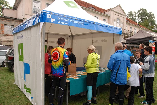 Metę rajdu stanowiła urocza sceneria przy pałacu w Owińskach. A tam, quiz z wiedzy o Puszczy Zielonka, konkurencje sportowe dla dzieci i dorosłych, grochówka na pokrzepienie po trudach aktywnego przemierzania leśnych duktów i atrakcyjne upominki. Ofertę promocyjną na swoich stoiskach prezentowały: gmina Czerwonak i Powiat Poznański. Można było zakupić wydawnictwa dotyczące Puszczy Zielonka, w tym – prosto z drukarni jeszcze ciepłą – zaktualizowaną mapę turystyczną tego terenu. Chętni mogli pod opieką przewodnika Marka Jakubowskiego zwiedzić nowo otwarty Park Orientacji Przestrzennej przy Specjalnym Ośrodku Szkolno-Wychowawczym dla Dzieci Niewidomych w Owińskach, co dostarczyło wiele uciechy zwłaszcza młodszym uczestnikom rajdu.