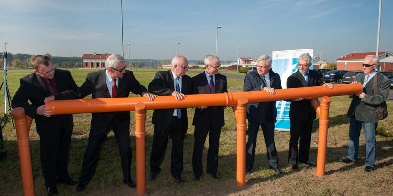 Symboliczne uruchomienie kanalizacji. Nie było przecięcia wstęgi, a połączenie rur kanalizacyjnych.