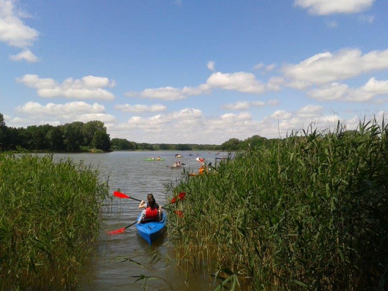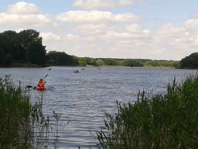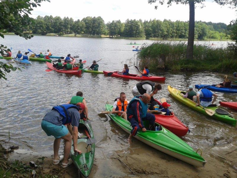 13 lipca br. odbyła się kolejna impreza z cyklu LATO Z PRZEWODNIKIEM W PUSZCZY ZIELONKA. Tym razem był to spływ puszczańskimi jeziorami, promujący kajakowy szlak turystyczny „Puszcza Zielonka”. Impreza dofinasowana została ze środków Powiatu Poznańskiego oraz Związku Międzygminnego „Puszcza Zielonka”. Uczestnictwo w spływie było nieodpłatne, co przełożyło się na ogromne zainteresowanie wydarzeniem. Zeszłoroczne zapisy trwały aż 12 minut, tym razem… 76 sekund. Tyle bowiem czasu potrzeba było, by zapełnić listę 90 dostępnych miejsc. A chętnych do uczestniczenia w imprezie było ponad 500 osób.